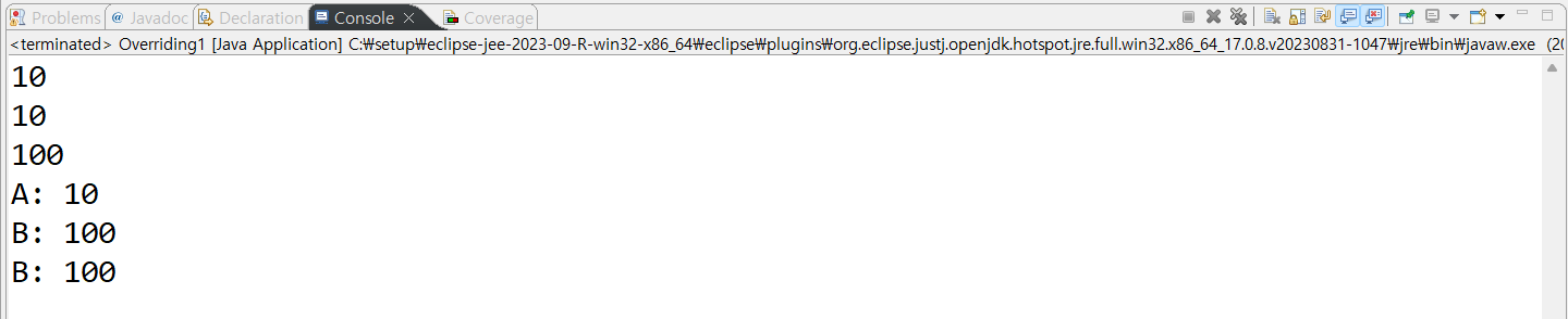 // 멤버 변수는 참조 타입(aa 등의 변수 앞에 정의된 타입)에 의해 결정됨