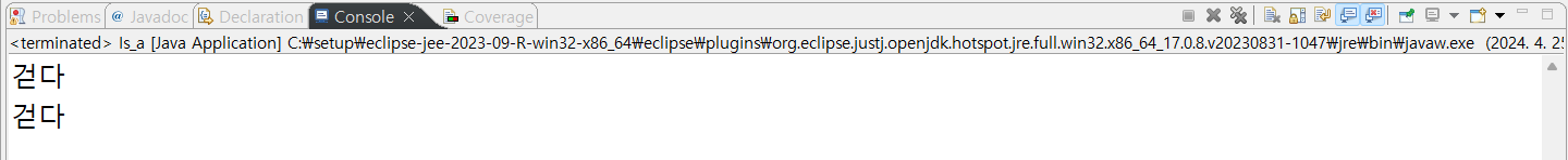 lee.intro(); // Human 클래스가 가지고 있는 메서드를 상속받았기 때문에 Human 클래스의 intro() 메서드를 호출할 수 있음!!
