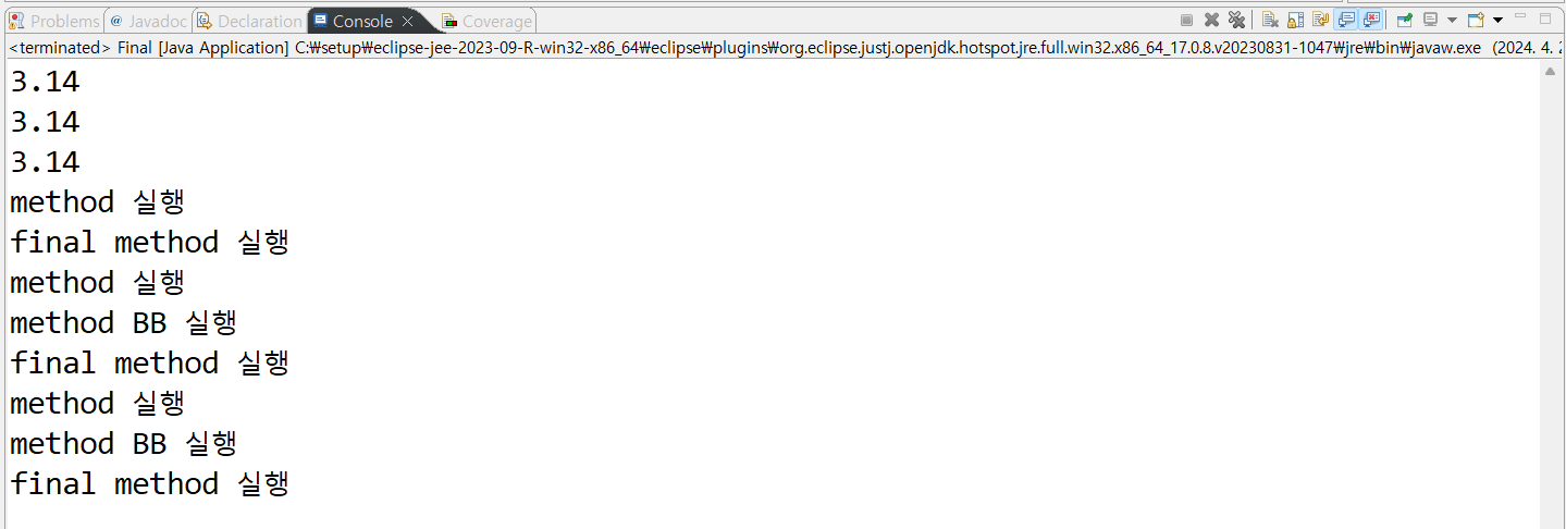 // aa.PI = 3123.432525; // final 변수는 재할당 불가함