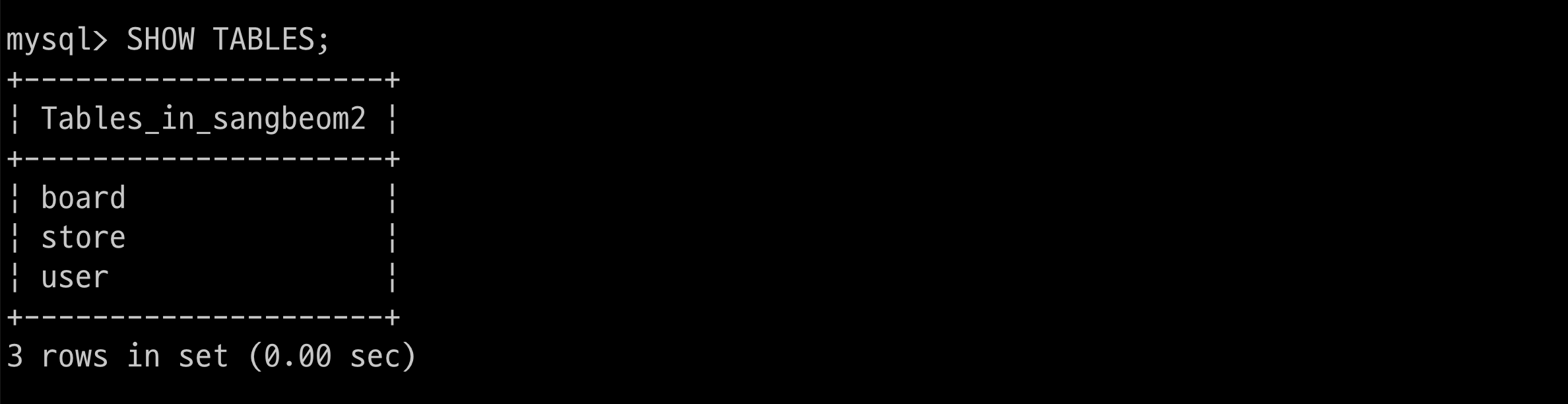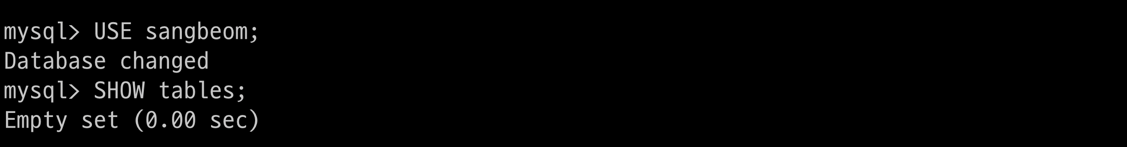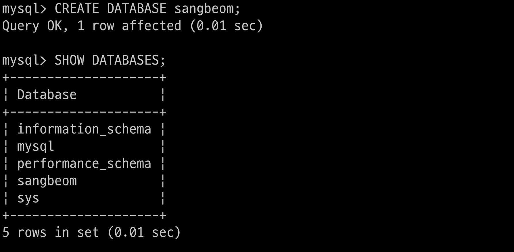 $ > CREATE DATABASE sangbeom;