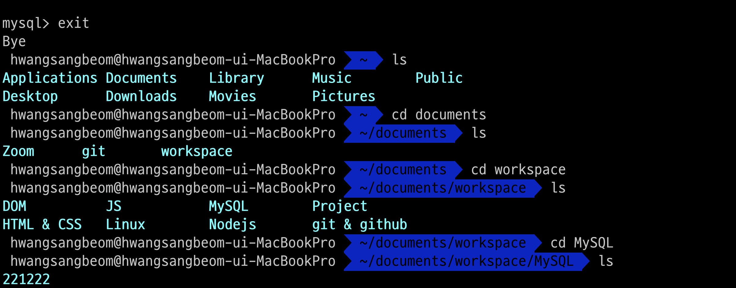 $ mysql > # <-- 이는 MySQL 프로세스에 접속했다는 의미이므로 여기서부터는 SQL 문법을 사용함!!