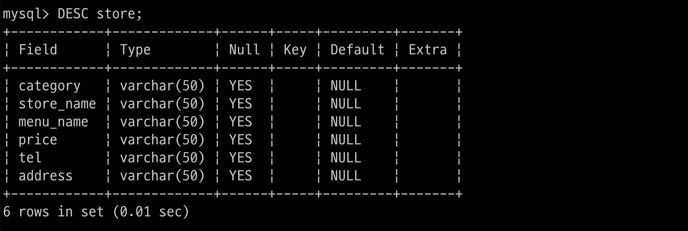 store_name VARCHAR(50),
